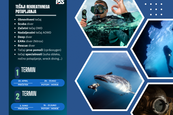 Začetni in nadaljevalni tečaji – OWD in AOWD; 14. marec, 19. maj, 13.-14. junij, 25. – 29. junij otroški termin: 28. – 31. avgust Več informacij o začetnem tečaju Več informacij o nadaljevalnem tečaju Prijava…